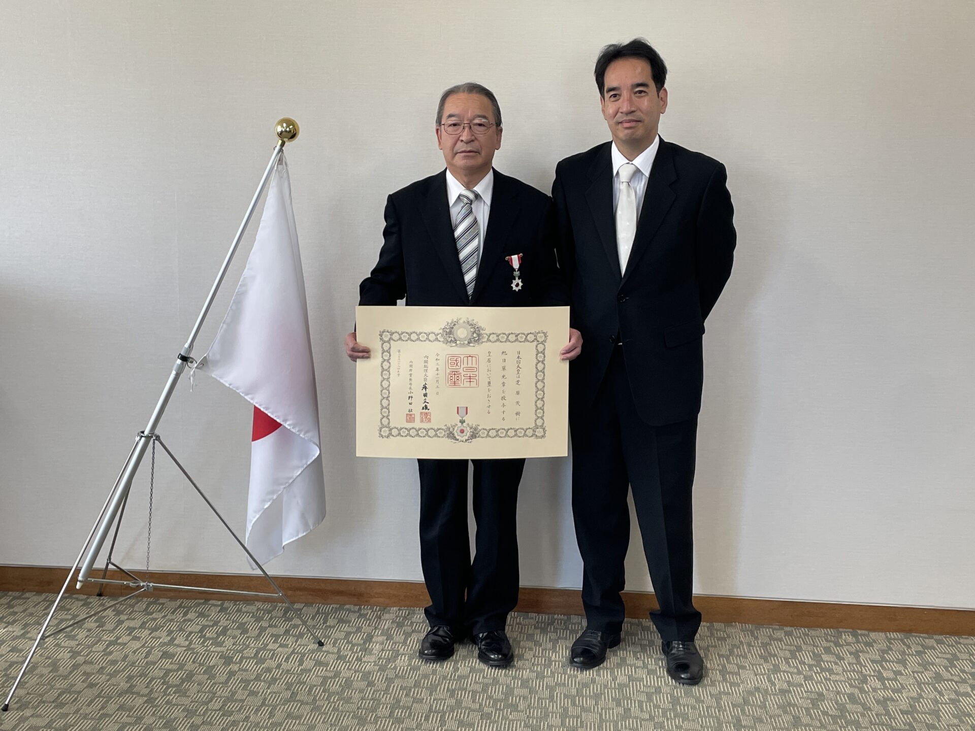 2021年11月3日付の令和3年秋の叙勲で弊社会長の芝原茂樹が旭日単光章(中小企業振興功労)を受賞しました。